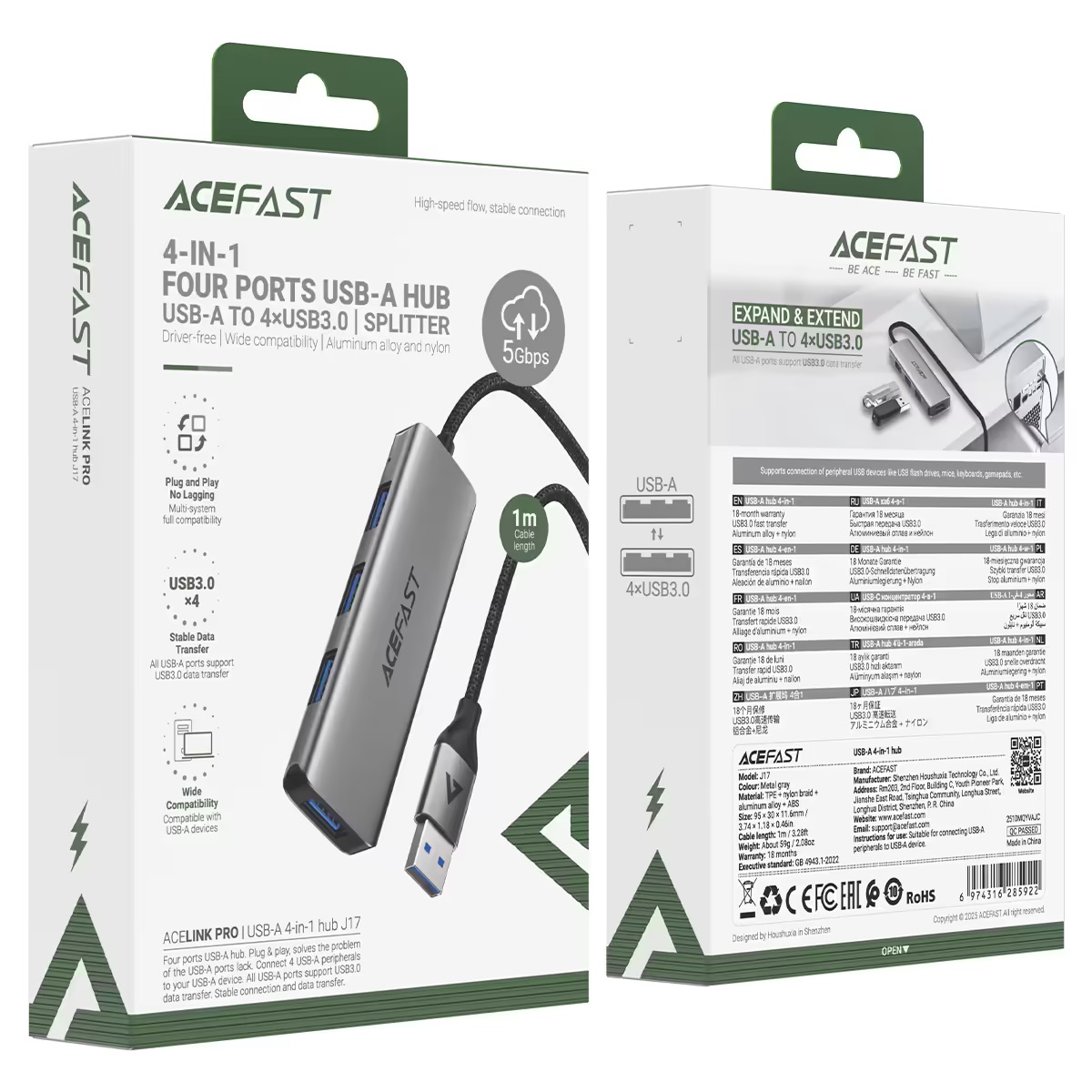 Адаптер ACEFAST [J17] Docking Station 4in1 USB to 3xUSB3.0