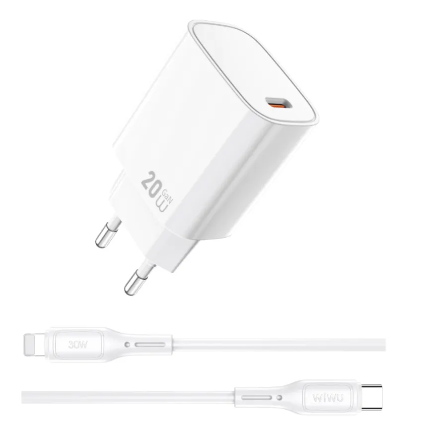 Адаптер WIWU [Wi-G007] Essential GaN Fast Charger USB-C 20W [with cable Lightning]