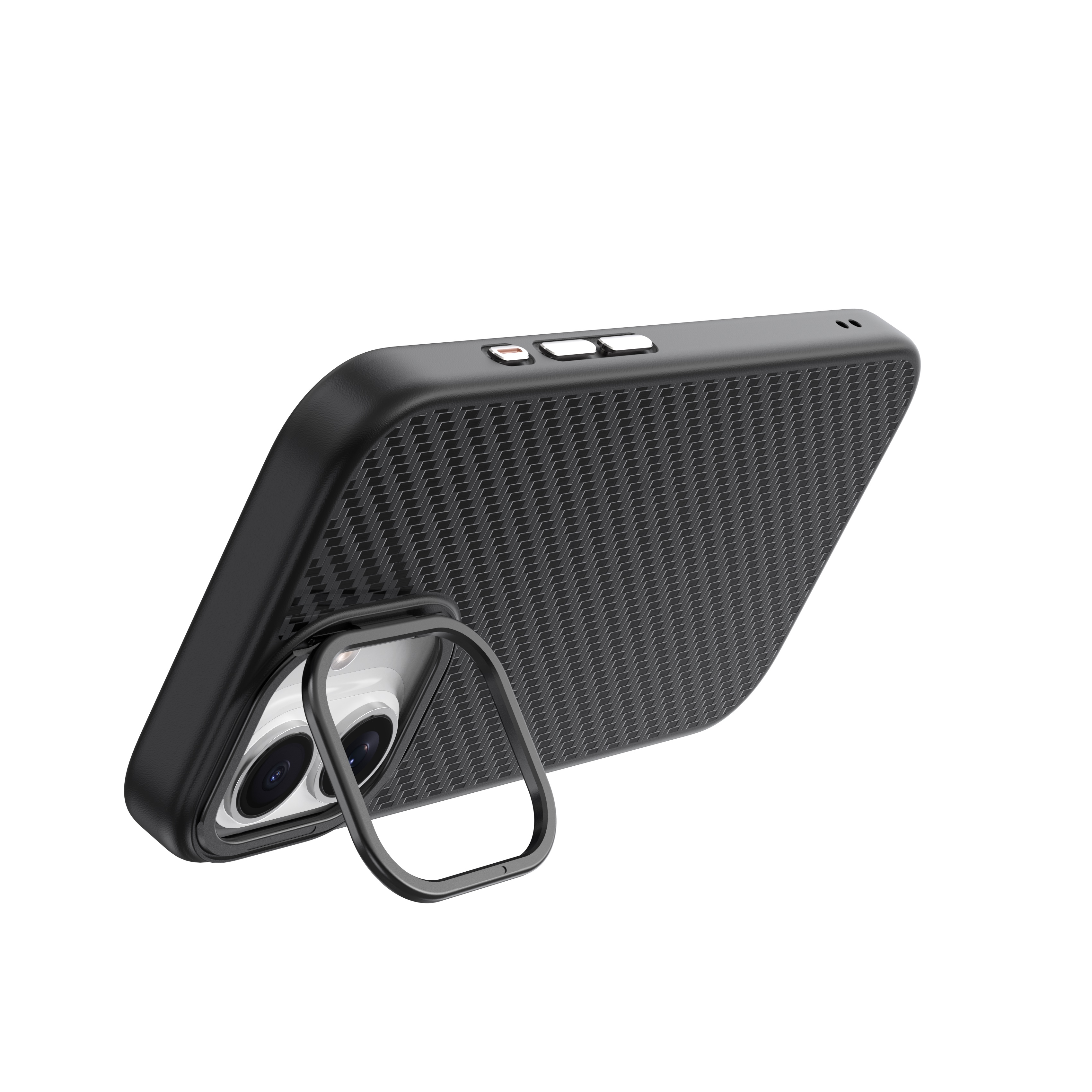 Чохли серії Kevlar Magnetic виготовлені із поєднанням TPU та карбонового волокна, що робить його надміцним із товщиною 3 мм. Елегантний чорний колір підкреслює сучасний і стильний дизайн аксесуара.Чохол має посилений захист кутів і підняті бортики навколо камери для додаткової безпеки пристрою. Поверхня стійка до подряпин і відбитків пальців. Забезпечує 360-градусний захист екрану та камери, поєднуючи елегантний вигляд із високим рівнем функціональності. Чохол оснащений підставкою, яка вбудована в рамку навколо камери. Підставка відкидається, забезпечуючи зручність використання пристрою у горизонтальному положенні та додатковий захист для камери.