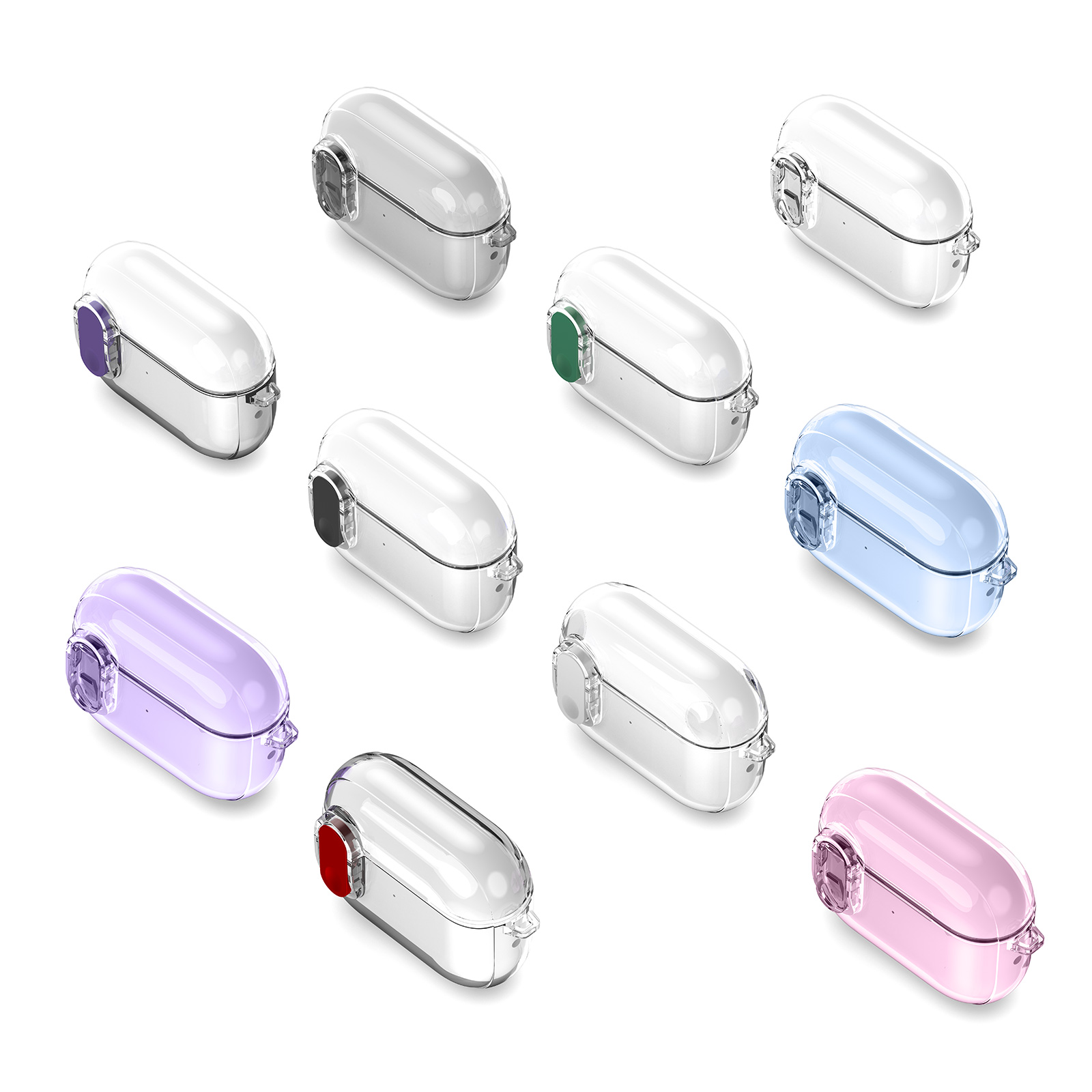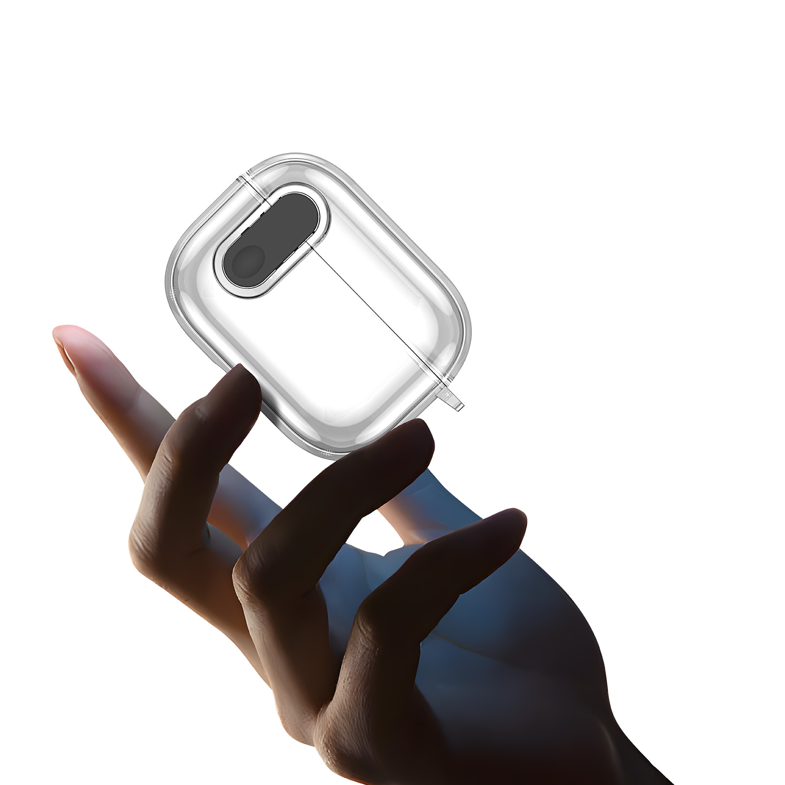 Чохол виготовлений із комбінації TPU та PC, що забезпечує ефективний захист від подряпин, потертостей і випадкових ударів. Модель оснащена застібкою, яка утримує кришку футляра закритою і запобігає її випадковому відкриванню під час носіння. Конструкція передбачає точні вирізи для зарядки та зручного доступу до навушників, без потреби знімати чохол у процесі використання. Комплект доповнений карабіном, що робить повсякденне транспортування навушників більш зручним та безпечним.