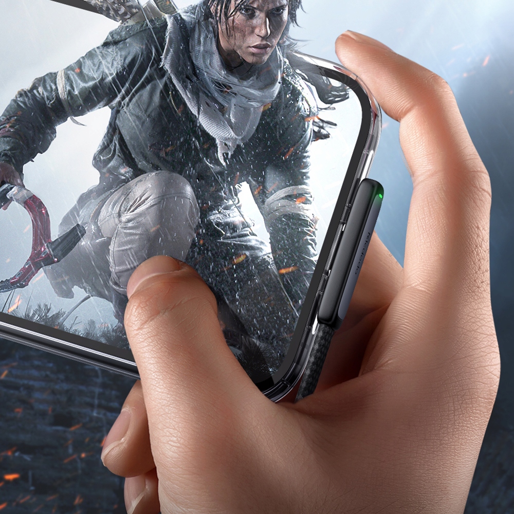 Конектор кабелю виготовлений з комбінації Aluminum Alloy та TPE, а Lightning-роз'єм розташований під кутом 90 градусів для зручнішого підключення. Яскравий зелений індикатор на конекторі візуально підказує стан зарядки. Кабель захищений нейлоновою опліткою, що стійка до стирання та заплутування, а також забезпечує довговічність навіть при частому використанні. Для зручного зберігання та організації кабелю в комплекті додається Magic Tape.